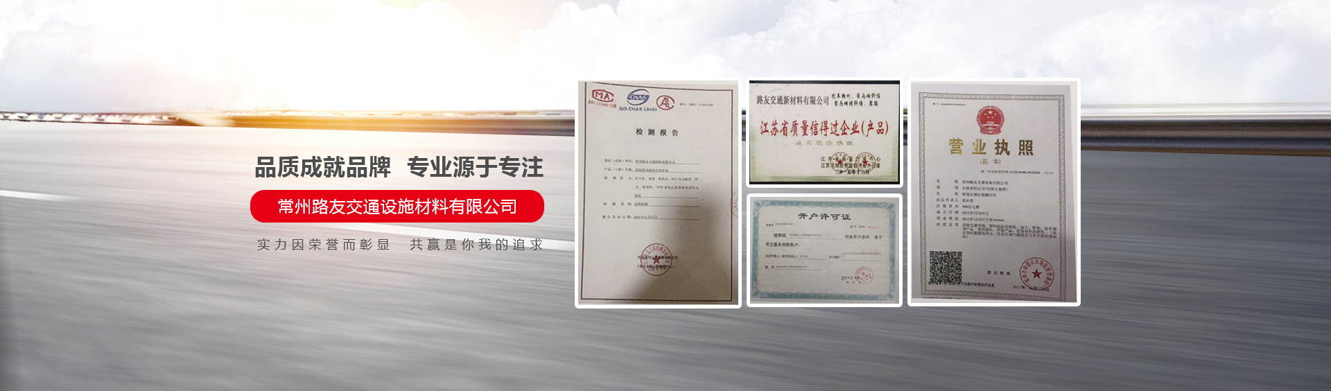 常州路友交通設施有限公司專業從事抗車轍劑生產、道路交通安全產品、防護類產品的研發,生產的專業型企業。公司經過長期的發展積累和創新,逐步形成了獨具特色的產品體系和營銷體系。公司擁有一批專業素質高、敬業精神強的工程技術人員隊伍,規?;纳a,嚴密完善的品質管理,熱情周到的服務,建立了覆蓋全國的產品銷售、施工服務體制。